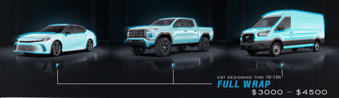 Explore our range of vehicle branding options—from simple lettering to full wraps—and find the perfect solution for your business. Our pricing guide provides clear details on costs, coverage, and benefits, helping you choose the ideal way to make a lasting impression on the road.