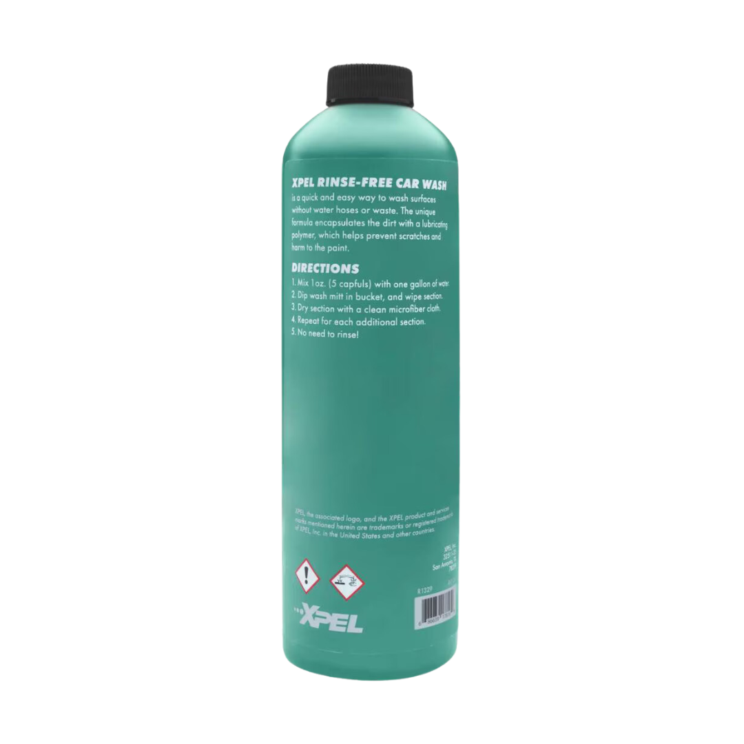 Description: XPEL Rinse Free Car Wash is composed of a unique formulation that encapsulates the dirt with a lubricating polymer preventing scratches or harm to the paint. Mix 1 oz with a gallon of water and you have a fast, safe and effective way to clean your car anytime, anywhere with no mess. Simply wipe on and dry off! XPEL Rinse Free Car Wash is safe to use on XPEL FUSION PLUS Ceramic Coating